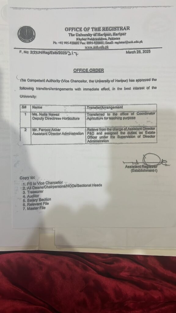Adding to the controversy, the university’s only horticulture specialist, Dr. Naila Nawaz, Deputy Director Horticulture, was transferred to teaching duties under the Agriculture Coordinator. Despite her reassignment, sources claim plant purchases worth millions continued.