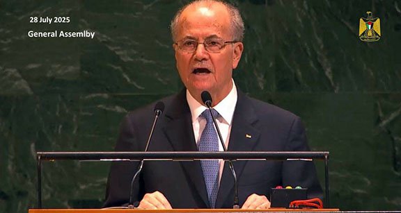 NEW YORK (Agencies) June 28, 2025 – Prime Minister’s Office – Prime Minister Dr. Mohammad Mustafa affirmed Monday that “the Palestinian people have the right to live in freedom and dignity in their homeland, just as every nation in the world deserves to live in peace and security. However, this can only be achieved by realizing the inalienable rights of the Palestinian people—foremost among them, the right to self-determination, the right of return, and the establishment of the independent, sovereign State of Palestine on the 1967 borders, with East Jerusalem as its capital, living side by side with Israel in peace and security.”